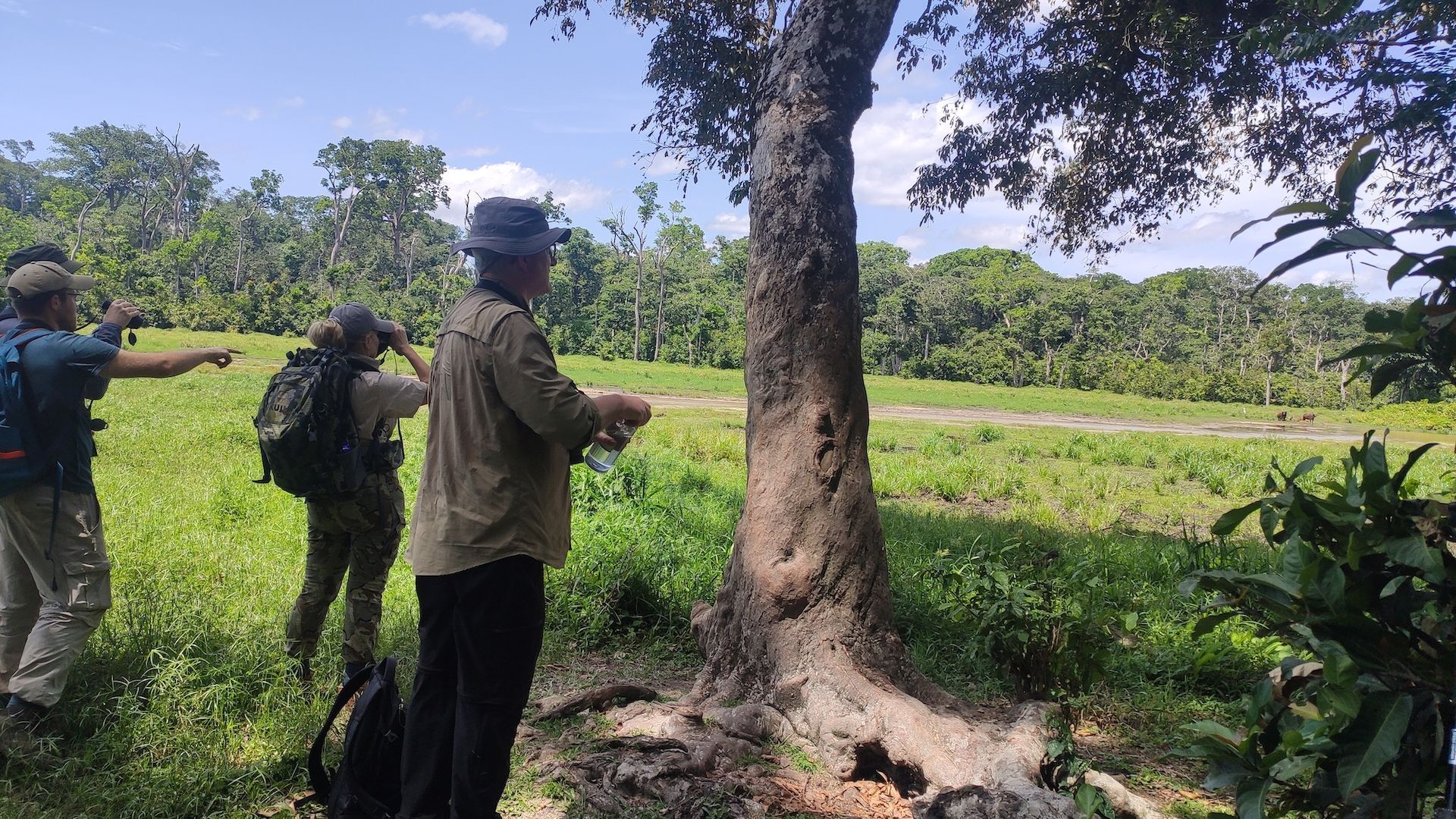 After a hearty breakfast, it's time to visit Dzanga Bai! This large clearing in the middle of the rainforest is where forest elephants gather in large numbers to indulge in drinking the mineral-rich waters that bubble across the clearing. The interaction between so many different groups of forest elephants is riveting and there's always the possibility of seeing some of the other normally shy forest creature like bongo, giant forest hog, red river hog, sitatunga and forest buffalos as well as exceptional birdlife.